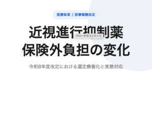 昨日は近視進行抑制薬の選定療養費について確認しましたが、